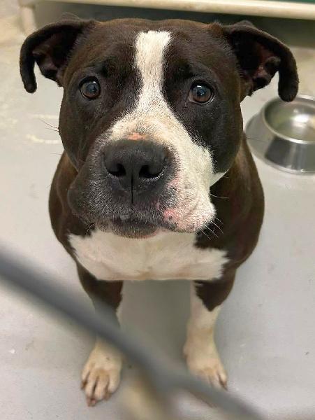 Notes: Due to no fault of her own, Hippo and her 10 puppies were surrendered to the same shelter that she came from. If you are looking to add a sweet Pittie to your family, then look no further. She is a little timid at first, but she will be an affectionate girl once she gets to know you.